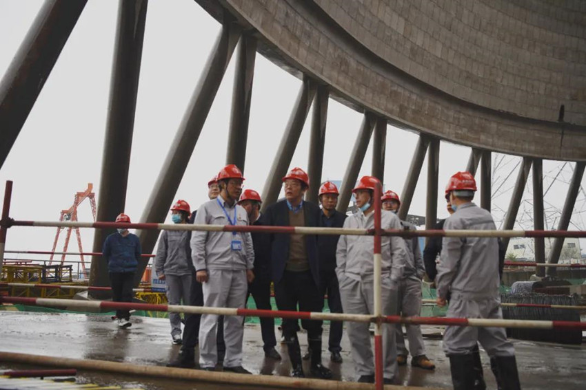 在丰电三期项目,曾昭和一行现场查看两台冷却塔消缺工作进展情况,并组织召开座谈会,听取丰电三期负责人关于冷却塔消缺进度的汇报、工程进度和工地质量、安全管理情况。曾昭和要求,各参建单位要结合丰电三期项目的特殊性,科学、有序地推进三期工程建设,确保工程安全质量;要在消缺工作中严格尊重客观事实、按照评估后的缺陷处理方案完成修复,不要随意更改设计方案,同时加强现场过程监督;要进一步强化安全管理,充分发挥“智慧安全工地”系统优势,提高“线上巡检”力度,保证施工平安。