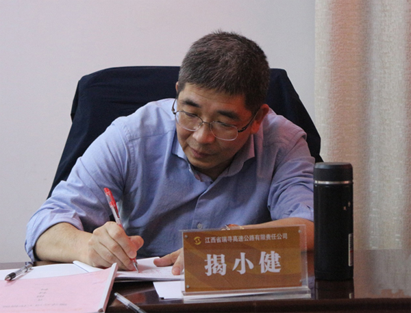 在调研座谈会上,瑞寻高速公司党总支书记、总经理邱小凡就瑞寻公司基本情况、瑞寻高速项目基本情况、当前经营状况和安全生产工作作了详细汇报,对当前亟待解决的问题做了专项汇报。