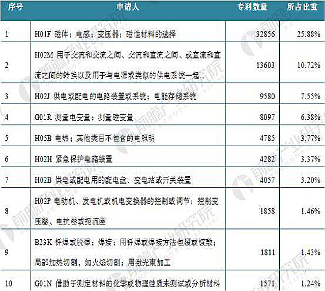 我国变压器技术的专利技术申请分布来看,H01F分布量最多,拥有32856项专利技术,占比为25.88%;其次是H02M和H02J,分别有13603项和9580项,占比为10.72%和7.55%。