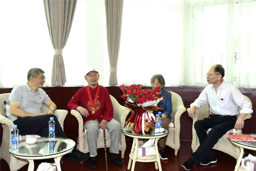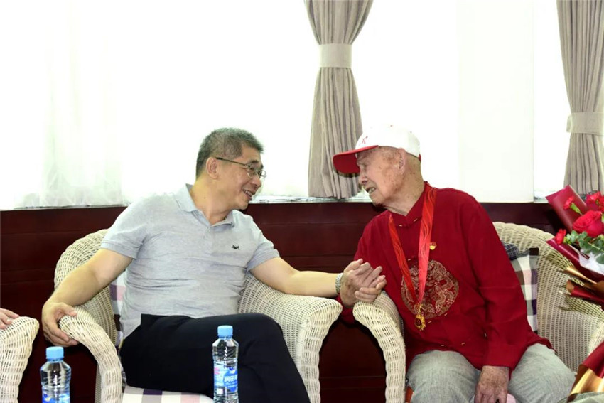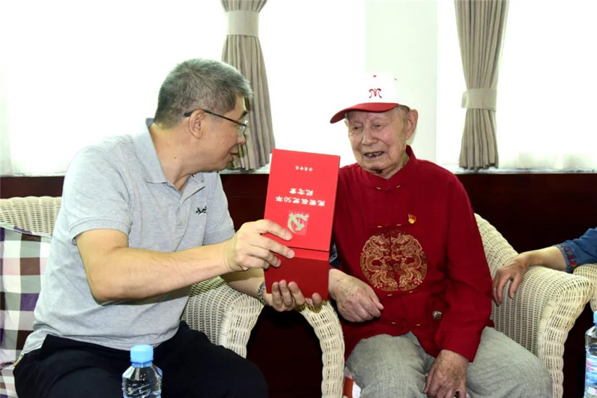 为庆祝中国共产党成立100周年,中共中央首次颁发“光荣在党50年”纪念章,银河娱乐公司共有34位老党员获颁纪念章。6月3日上午,银河娱乐党委书记、董事长揭小健来到丰矿银河娱乐,为抗战时期参加革命工作的离休干部贺有富送上“光荣在党50年”纪念章,向他致以崇高敬意和诚挚问候,并送上百岁生日祝福,感谢贺老为革命事业、为企业发展作出了积极贡献。