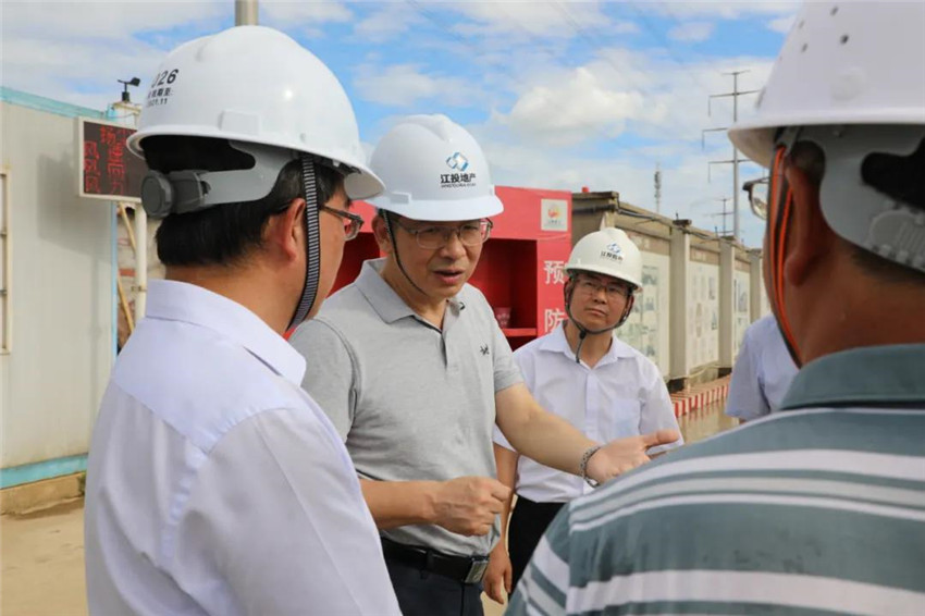 揭小健一行实地走访察看了江投颐养北园项目建设现场,并详细了解安全生产管理、施工进度和项目食宿等情况。在现场,揭小健强调,要“不留情面”抓安全生产,把安全生产作为推动项目建设高质量发展的奠基石。