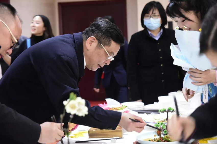 评委们通过对“色、香、味、型”等方面进行评分,最终评选出辣椒炒肉、红烧鲫鱼、小炒牛肉和家乡豆腐4组菜品的前三名。银河娱乐公司领导纷纷到场品尝美食,进行点评,为厨娘们精湛的厨艺点赞,并送上鲜花。